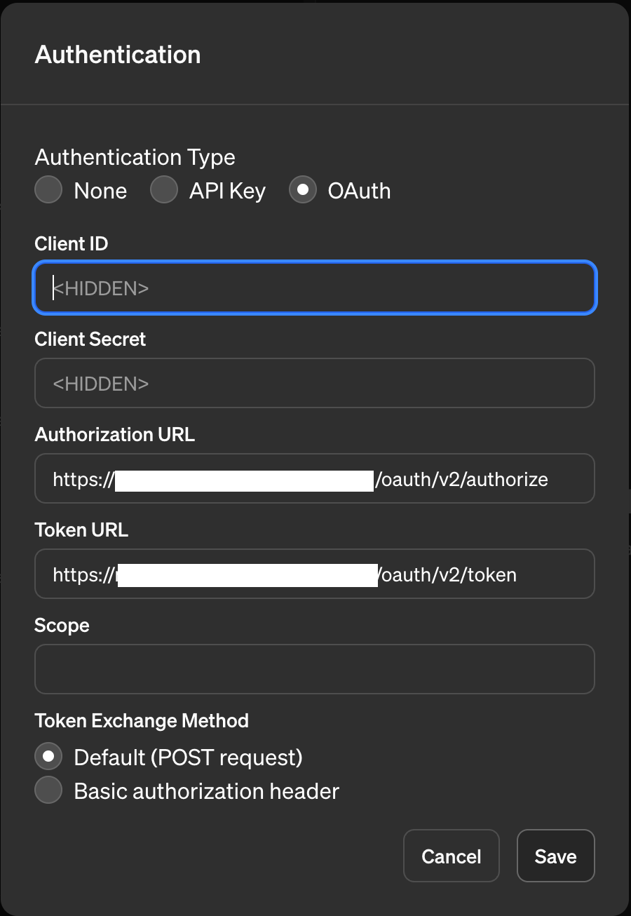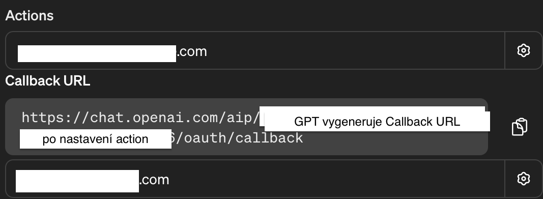 Dále pak podle dokumentace platformy jsem našel Authorization URL a Token URL. Každá platforma to bude mít lehce jinak. Nebo GPT vám to najde za vás, jako v mém případě:)
