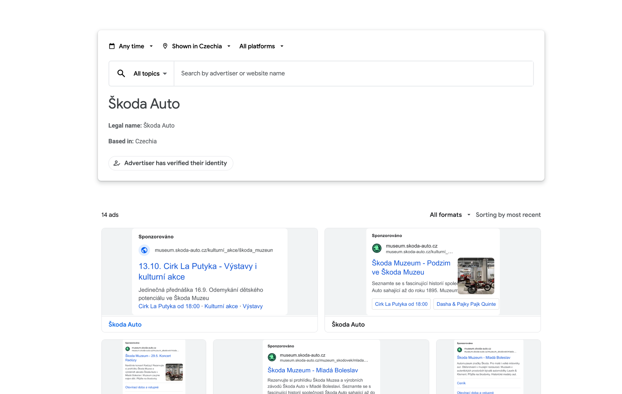 Google Ads Transparency na příkladu Škoda Auto, jelikož jsem správný Boleslavák:)