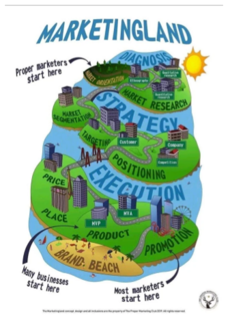 Marketing Land je grafické znázornění marketingové strategie, kterou si dokonalý marketér prochází při spouštění produktu