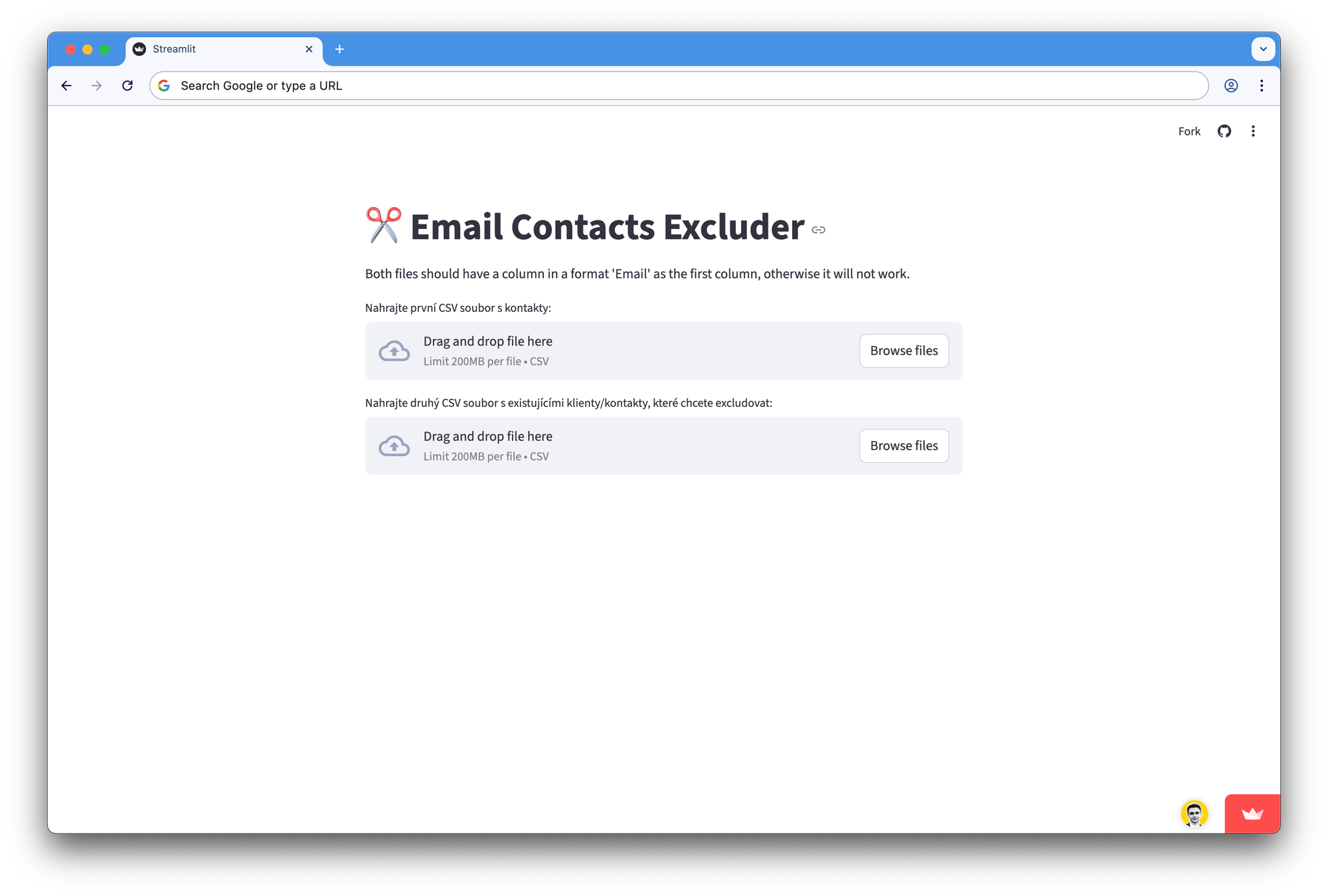 Máte seznam e-mail kontaktů a potřebujete ošetřit, abyste nekontaktovali kontakty na blacklistu? Tento nástroj vám pomůže, bez obav o soukromí (nedoporučuji vkládat do ChatGPT a jiných AI nástrojů kvůli bezpečnosti).