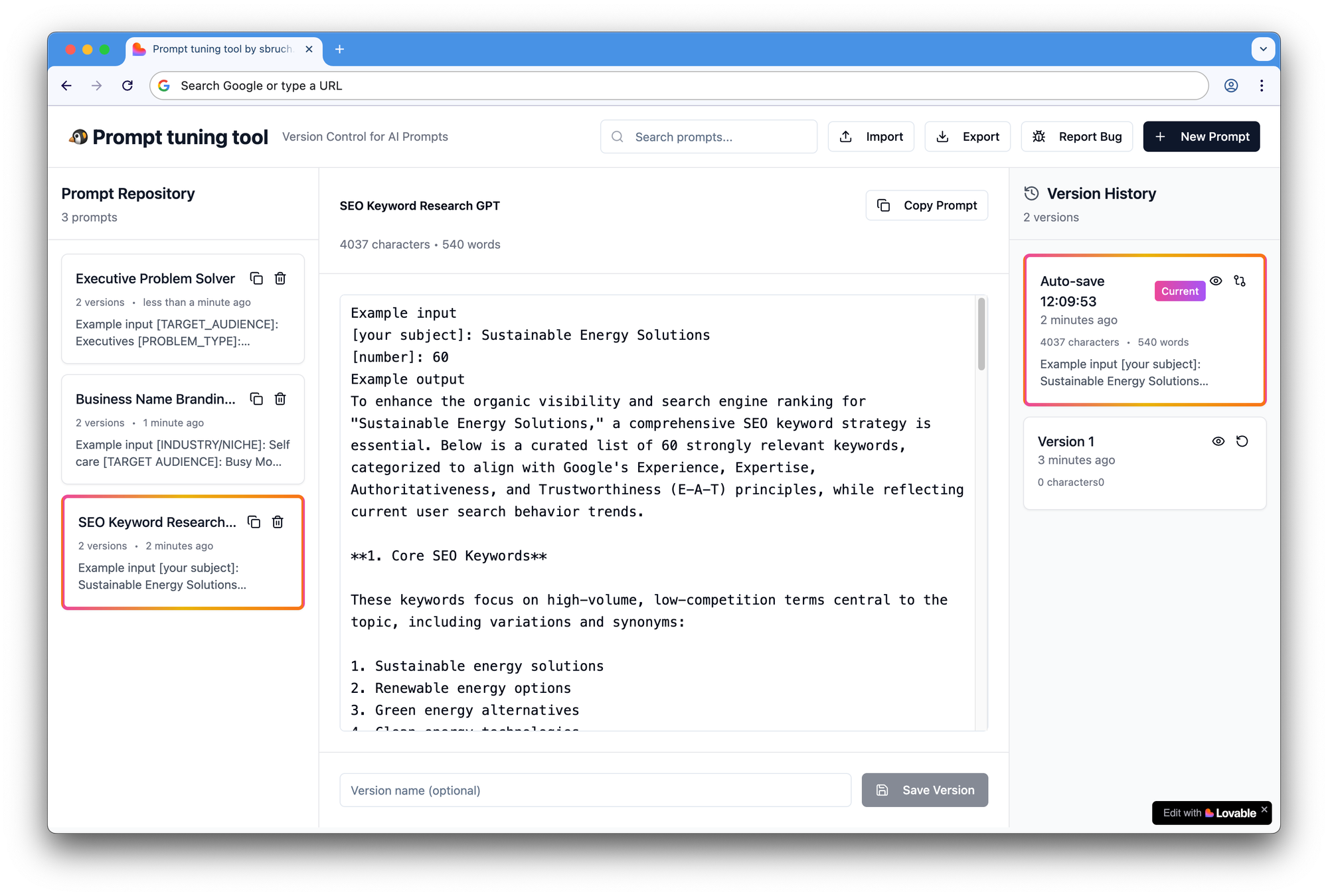 Máte skvělé prompty pro vaši práci a nechcete o ně přijít? Chcete je časem “tunit”? Tento nástroj vám pomůže verzovat, editovat a ukládat vaše prompty.